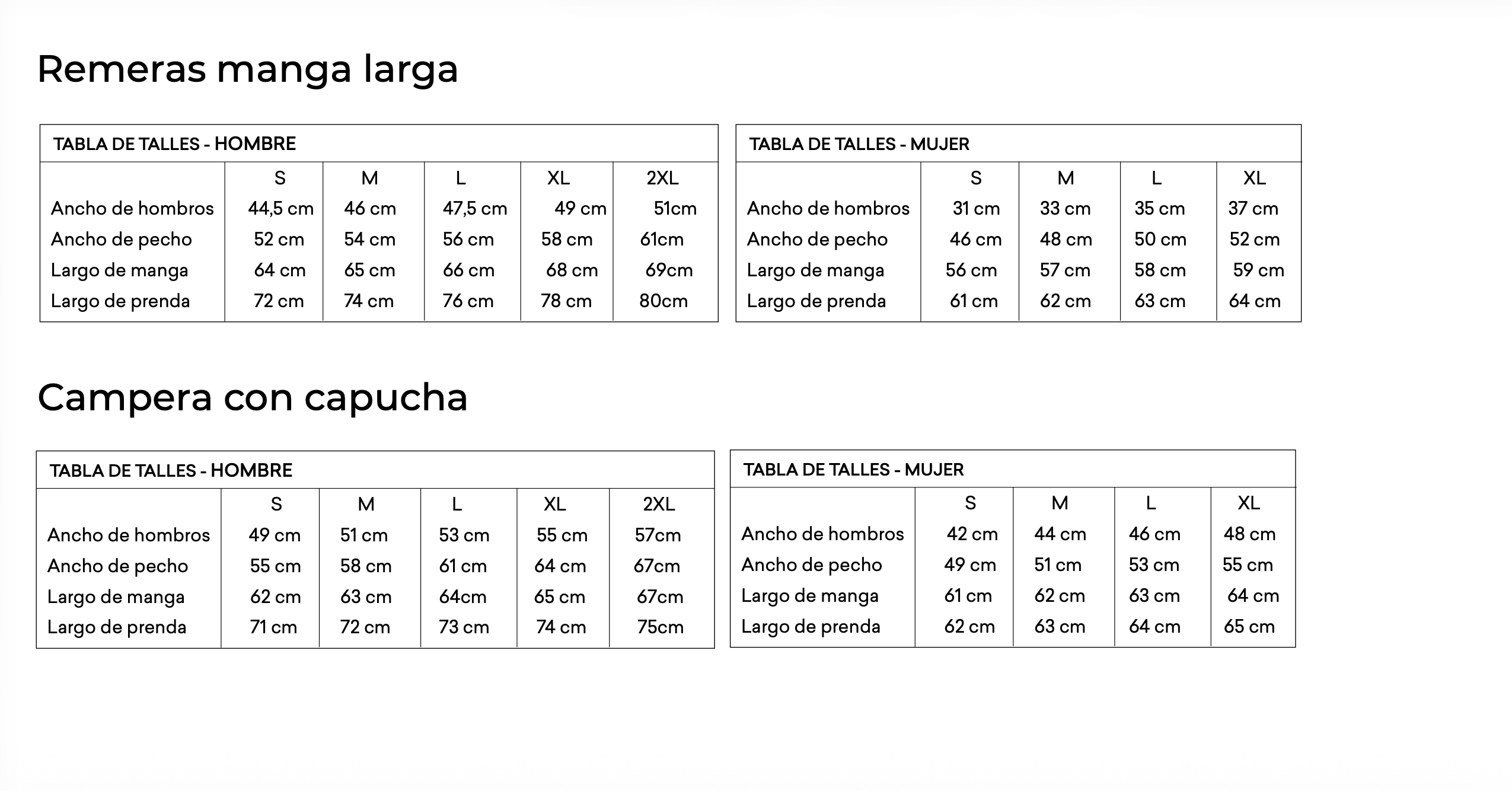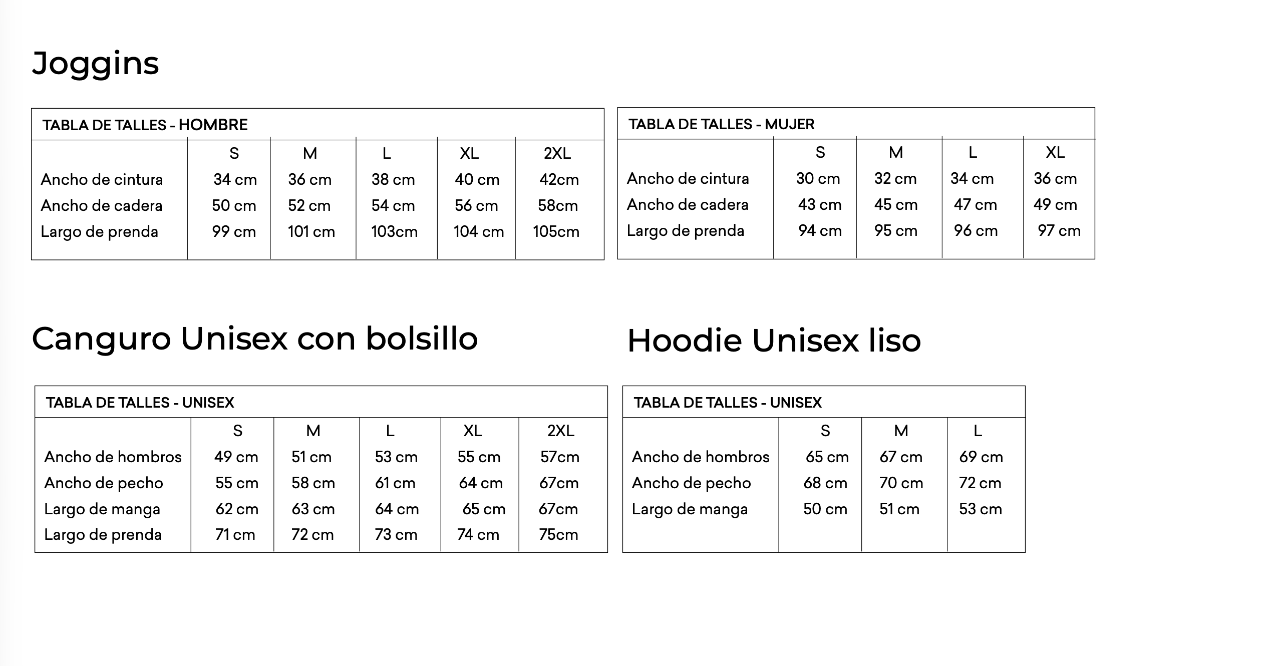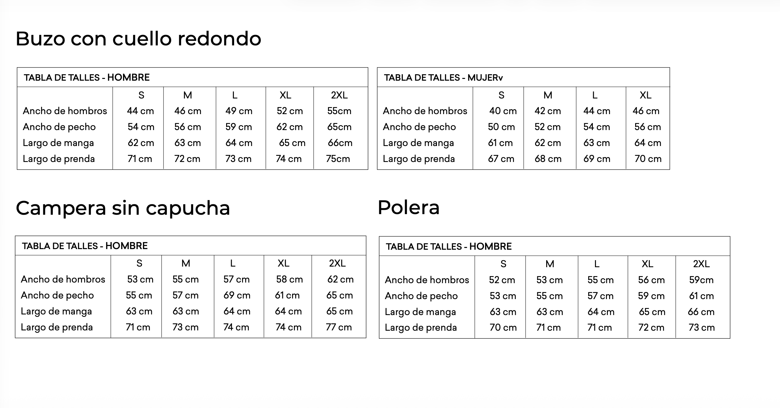 Guía de talles